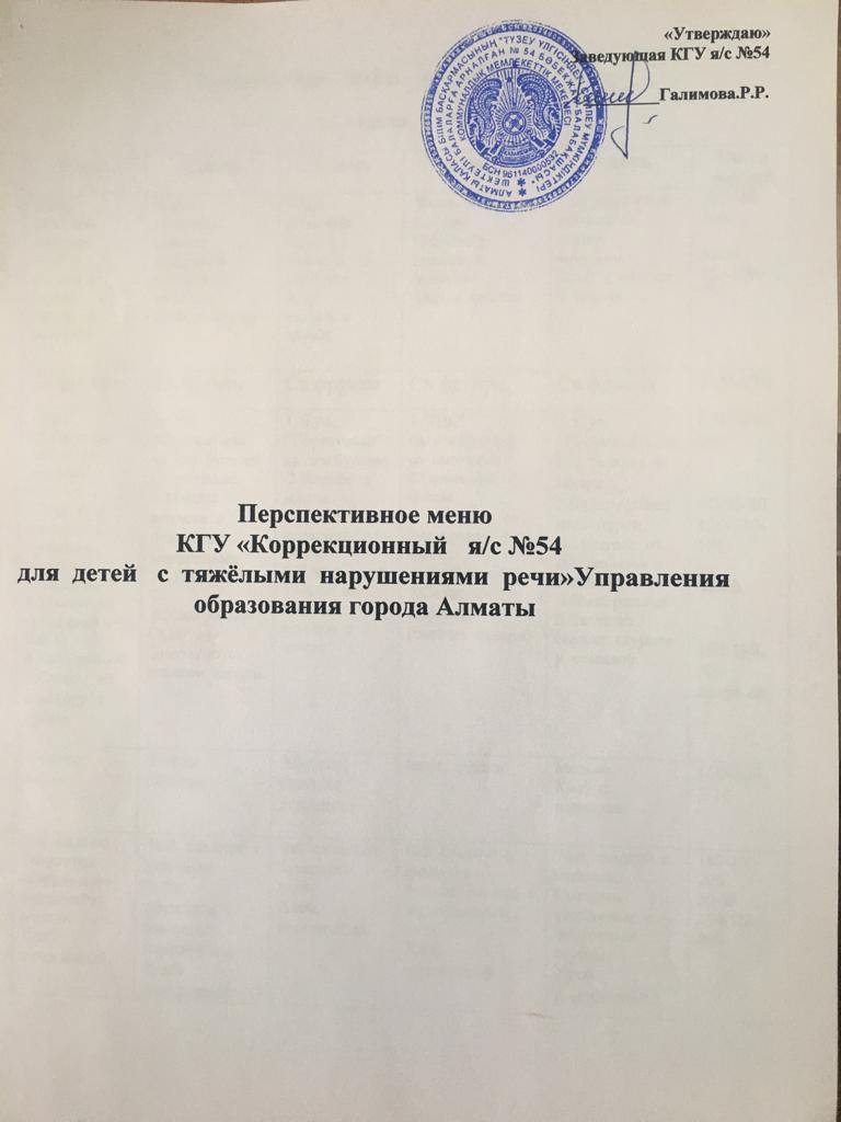 Перспективное меню (лето-осень) я/с №54